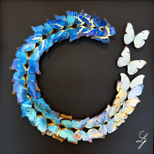 À travers le mouvement des papillons, Lison explore la beauté du lien et l’harmonie des contraires : l’ombre et la lumière, l’individuel et le collectif, la fragilité et la puissance. Ses œuvres, empreintes de sérénité, invitent à ralentir, à contempler, à ressentir.